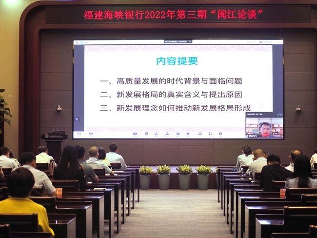 6月10日下午,福州市发改委党组和福建海峡银行党委联合举办理论学习中心组(扩大)学习会暨2022年第三期“闽江论谈”专题讲座,邀请中央党校(国家行政学院)经济学教研部副教授、中国人民大学区域经济学博士蔡之兵,围绕“融入和服务新发展格局 助推高质量发展超越”主题,深入浅出地为福州落实“强省会”战略、加快建设现代化国际城市积极出谋献策。